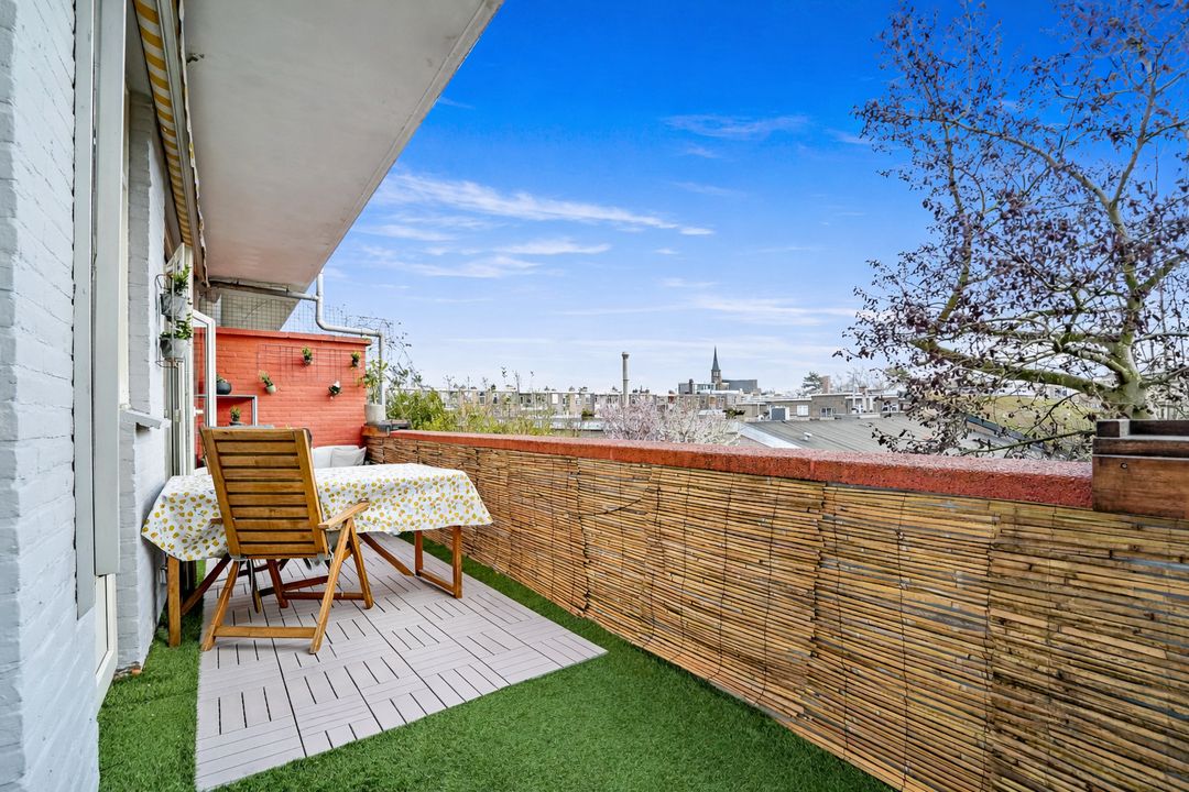Vanuit zowel de keuken als de woonkamer heb je toegang tot het zonnige terras aan de achterzijde. De openslaande deuren in de woonkamer zorgen daarbij voor een fijne verbinding tussen binnen en buiten. Het terras heeft veel privacy en is gunstig gelegen op het zuidwesten, waardoor je hier de hele dag volop van de zon kunt genieten. Er is een elektrische zonneluifel, zodat je op warme dagen ook lekker schaduw kunt creëren. Daarnaast bevindt zich op het terras een praktische balkonkast met de opstelplaats voor de wasmachine en droger.